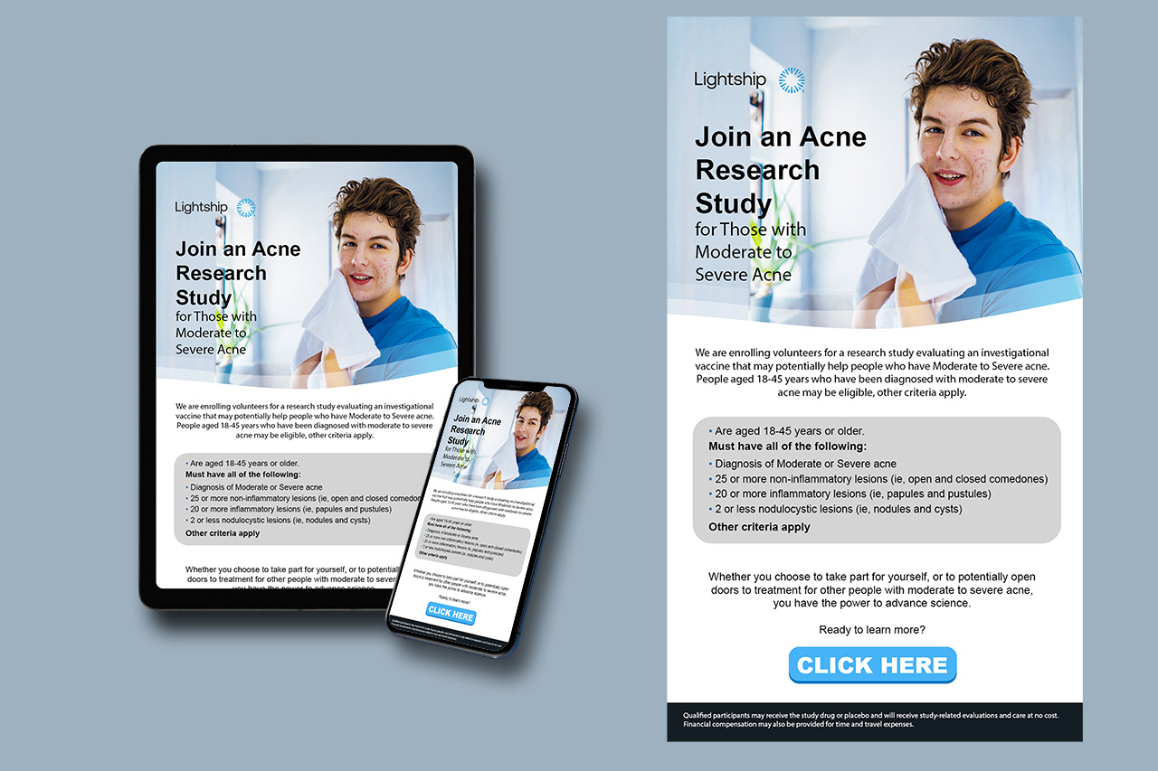 CHALLENGE: Recruit for an adult moderate to severe acne study utilizing social media, print advertising and events.